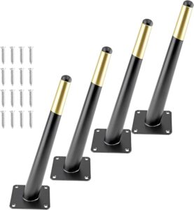 *Designed for Versatility — Matte Black Gold furniture feet can compatible with many mid-century or modern designed furniture. Also, metal legs come with pre-drilled holes and screws so installation is quick and painless for all skill levels. Not only perfect for the sofa, but also the cabinet, table, couch, chairs, love seats, bed, desk, ottomans, cupboards, dresser, bookcase, and other DIY furniture.