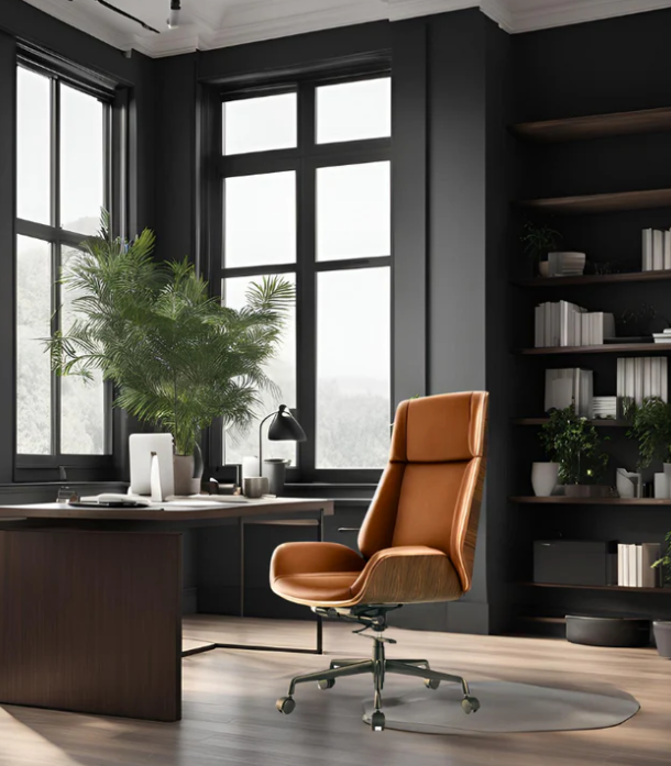 WOODY EXECUTIVE CHAIR,Introducing the Office Chair, the perfect combination of style and function for your modern workspace. This mid-century inspired chair features a sleek and sturdy chrome base, complemented by nice and smooth leather that blends into any décor. The adjustable height and tilt mechanism ensure maximum comfort during those long work hours, while the stylish tufted backrest adds a touch of sophistication to your office space. Upgrade your workspace with the Rhett Office Chair and enjoy the perfect blend of form and function.